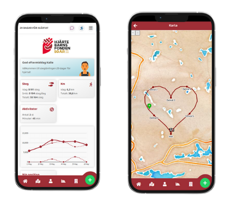 I appen fylls ett hjärta i steg för steg – ett symboliskt bevis på din insats. Målet? Ett helt ifyllt hjärta den 29 september för att hylla din insats för ditt personliga välmående och för drabbade hjärtebarn.